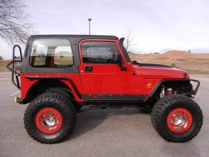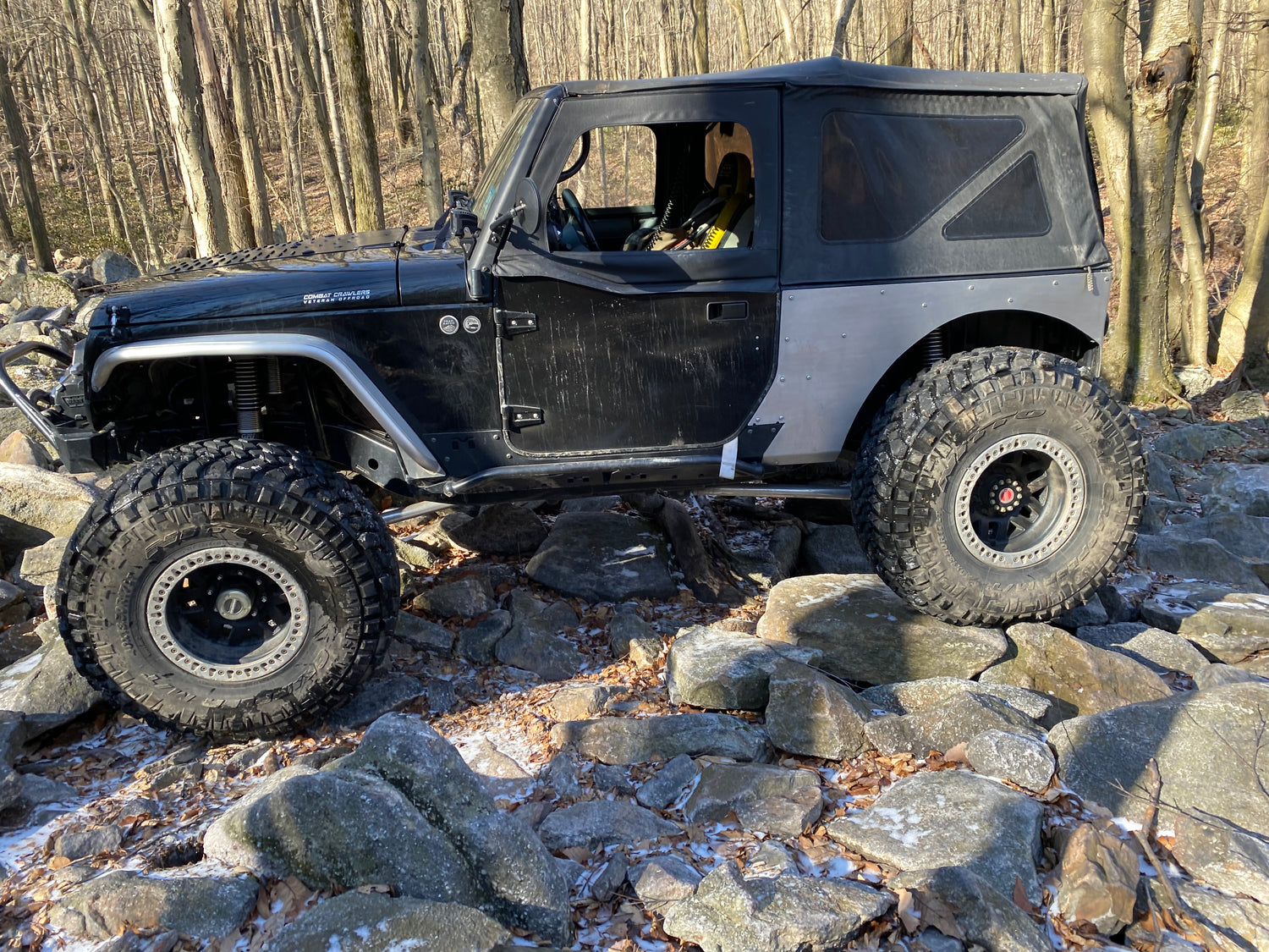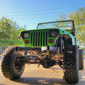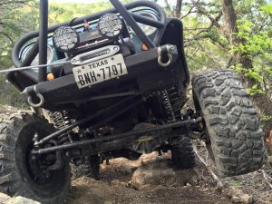 "I have dynatrac prorock 60 axles front and rear with ARB lockers transferring the power of a Cummins 4BT to 37" BFG KM2's. Couldn't be happier with my epic axles and everyone on the trails gets jealous! Also have custom anodized king coilovers, tub monstalined inside and out, and YJ suspension converted from leaf sprung to long arm 4 link."