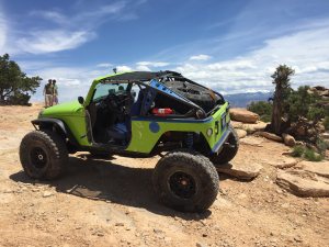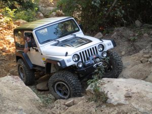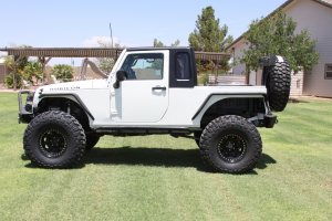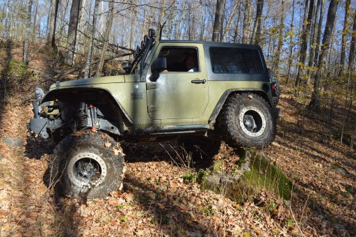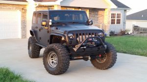"I stretched this 2 door JK body and frame 12 inches and moved the rear axle another 4 inches, Went from 94 inch WB to 110 Rock Krawler long arm front, long arm 3 link rear, 5-38 gears, ARB lockers and Red Label BFG Krawlers works great and looks good. With the Dynatac axles it goes where its pointed."