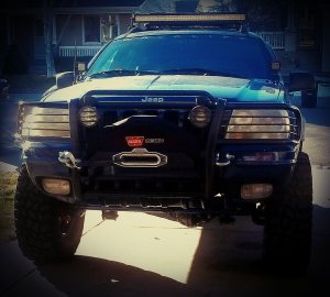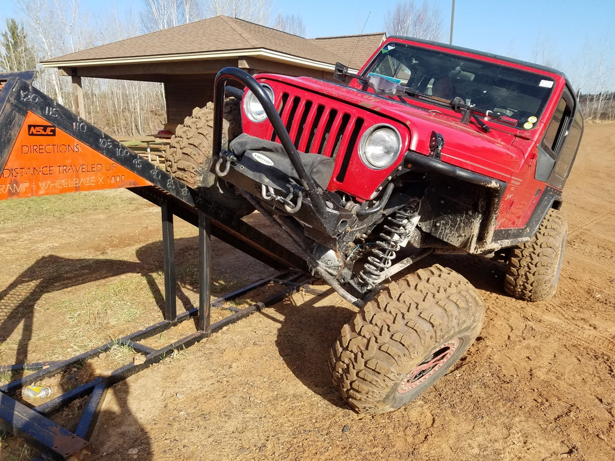 "My 99 TJ is a work in progress. It has a ProRock 44 up front with an Eaton locker and 4.56 gears. Alloy Grande 30 hubs and stub shafts, Teraflex high steer knuckle, G2 rear D44 with an Eaton locker, 35x12.5x15 Pitbull Rockers Radials, GenRight front bumper, rock sliders and armor, UCF skids, cage and rear tire carrier built by Sinister Offroad."
