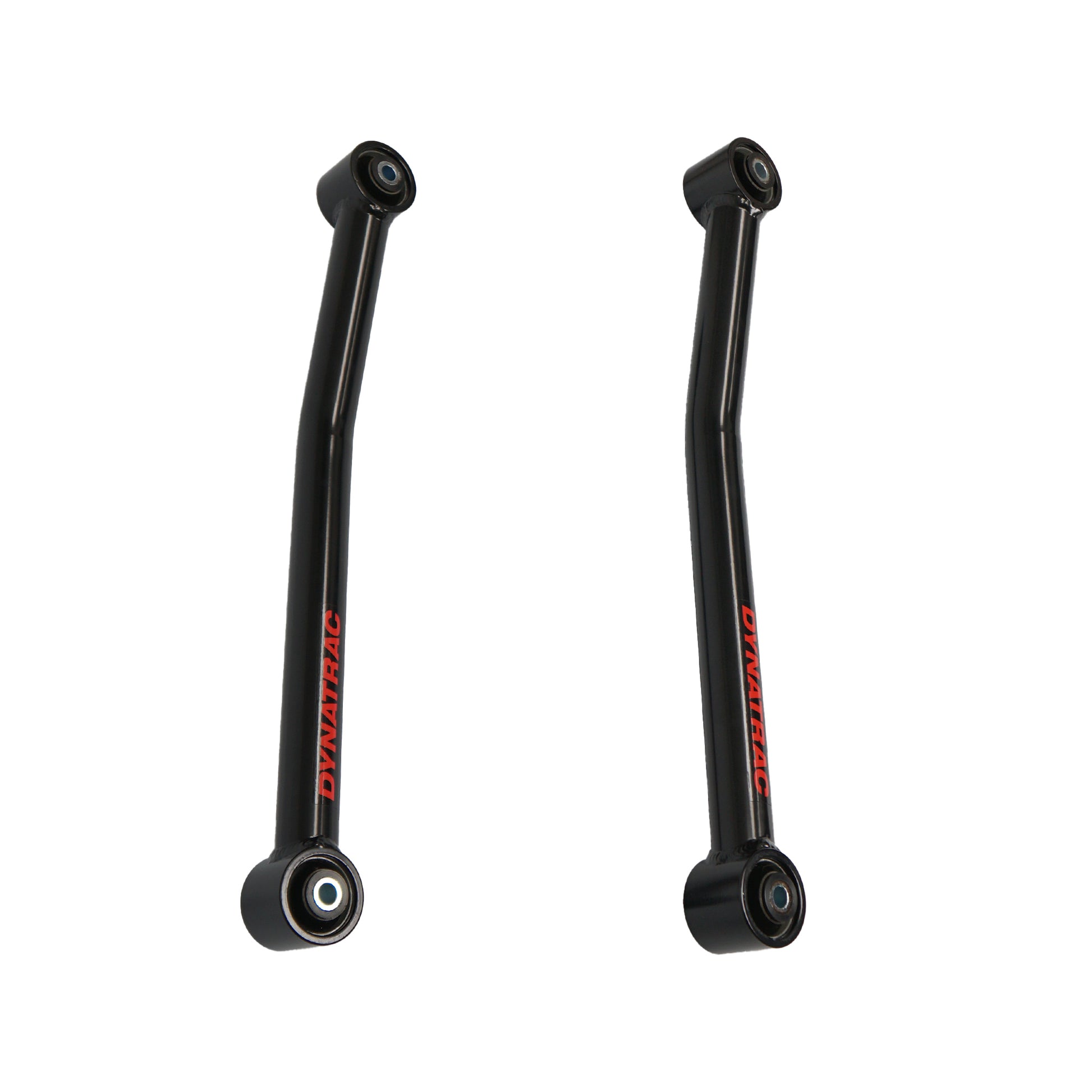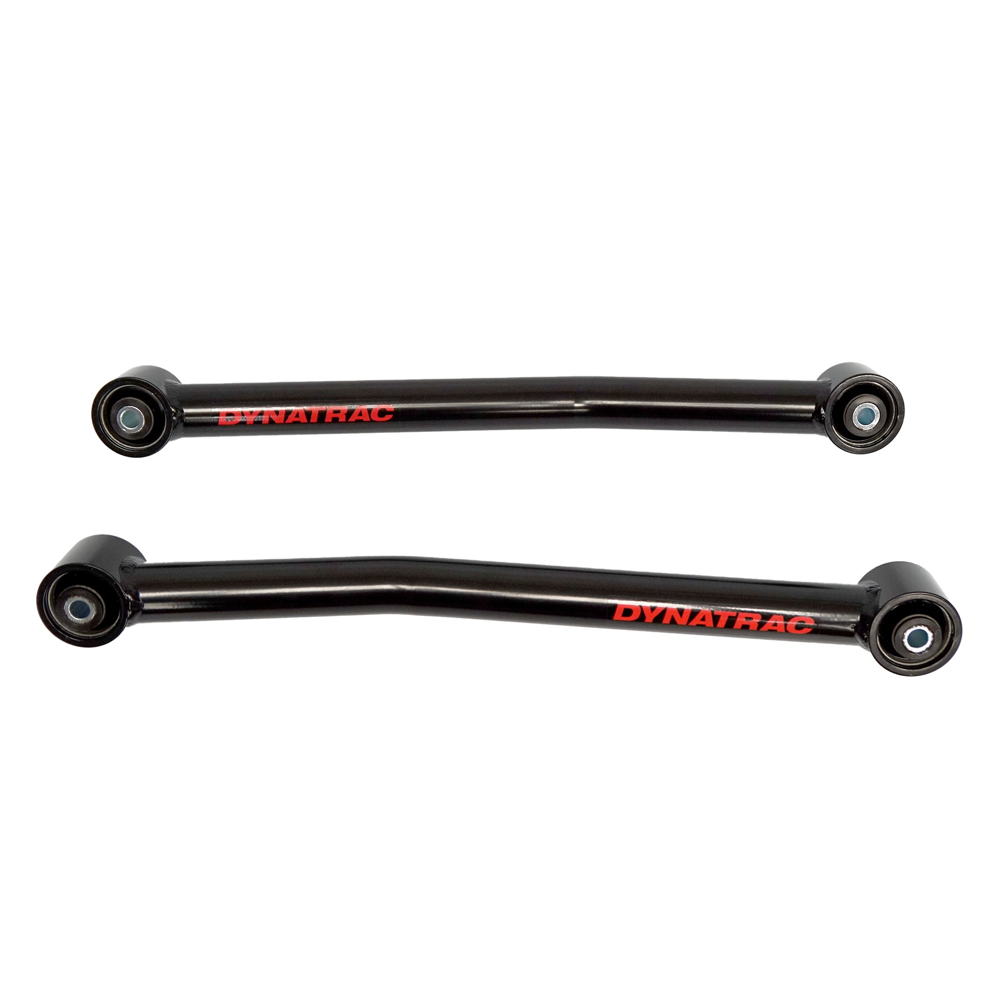 DYNATRAC’s tubular steel front lower link arms for the Jeep Wrangler JK are a significant upgrade over the factory units due to increases in strength and performance as well as improved alignment specs. These components are made from CNC machined and notched 1026 DOM steel and welded in-house, providing a major improvement over the construction of the stock units. This front lower link arm kit features multi durometer bushings that allows for noise free operation and maximum angularity without the need for periodic greasing and/or other maintenance. The increased range of motion provided by these bushings allows the suspension function as intended, without the bushing bind that limits the vehicle in stock form.