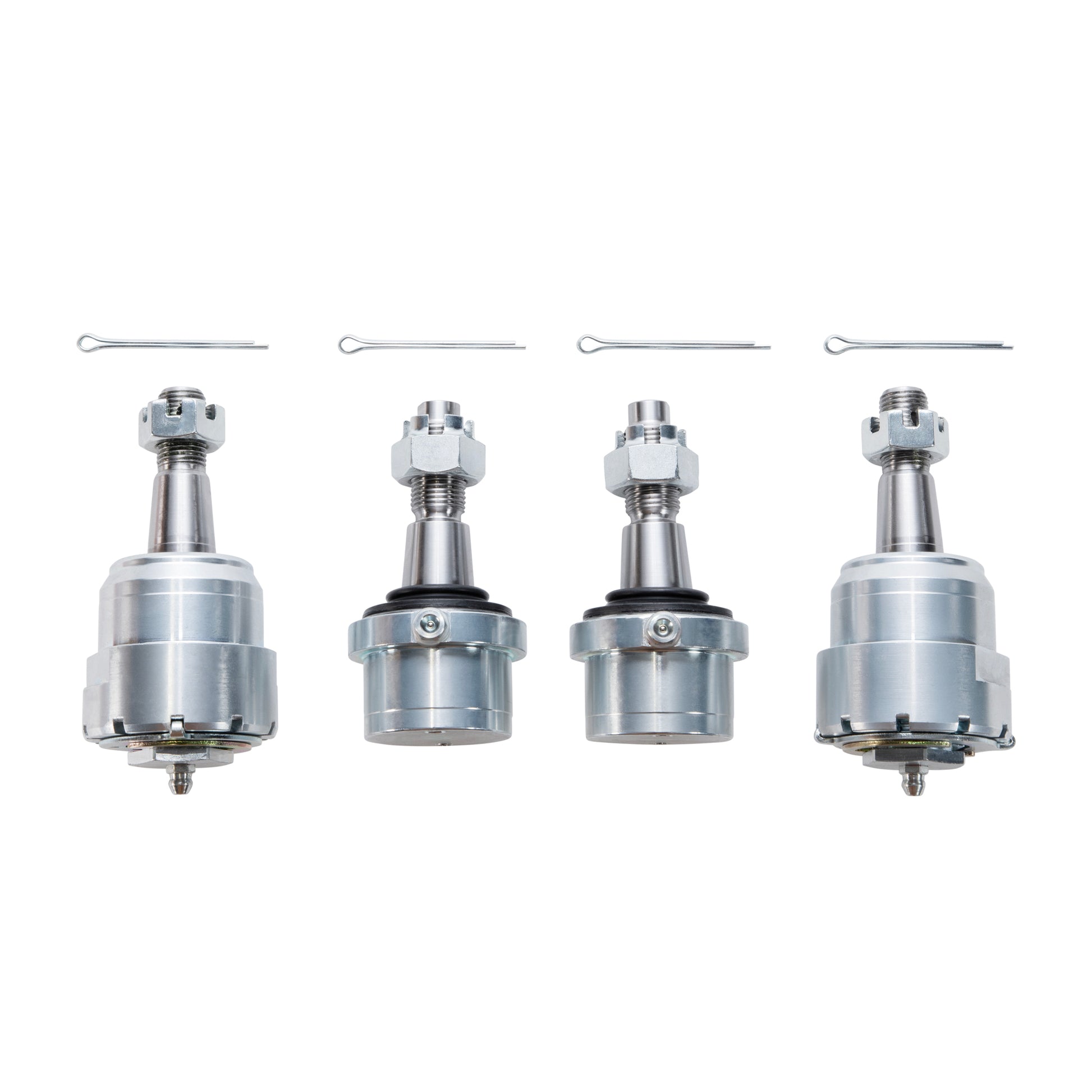 Complete set of patented, made-in-the-USA, rebuildable, Dynatrac HD Balljoints™ for 2007-2018 Jeep Wrangler JK and 1999-2004 Jeep Grand Cherokee (WJ). Fits stock front axle or Dynatrac ProRock 44™ for Jeep JK applications. Dynatrac HD BallJoints are the strongest, most durable and highest quality available anywhere, featuring heat-treated high-strength billet bodies with chromoly stems. The heat-treated, precision-ground stainless steel ball meets military specifications. Unique seals prevent contamination, and the ball joints have greasable fittings and Teflon-coated wear points to provide a long, durable life. Dynatrac HD BallJoints are rebuildable.